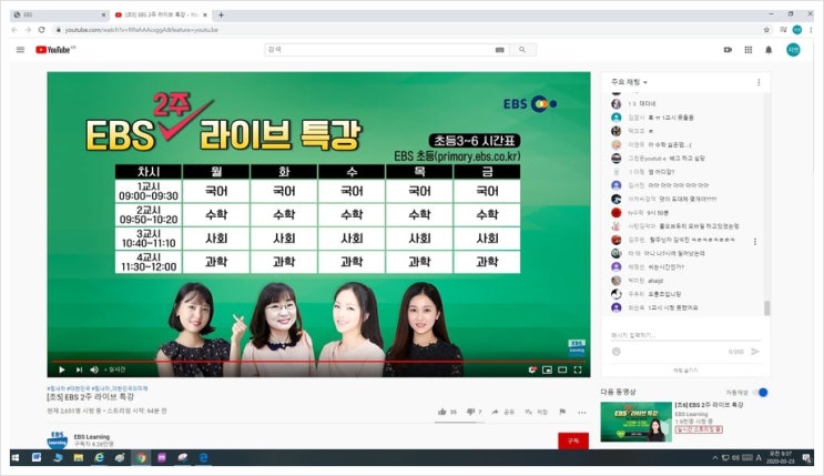 ebs 라이브특강 유튜브로 시청가능. 실시간 스트리밍중!