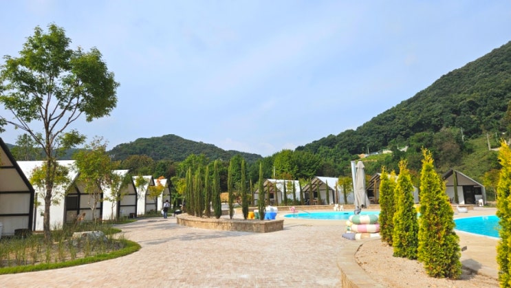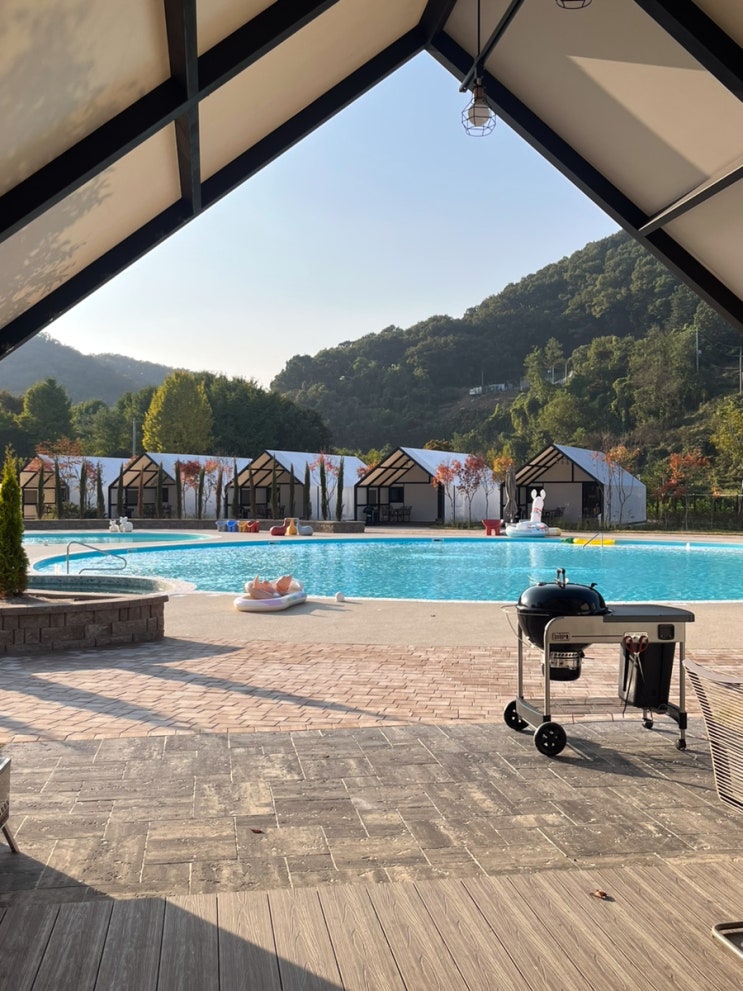 서울 근교 럭셔리 글램핑장 추천 초대형 수영장 노천탕 온수풀 동두천 캠핑장 아낌없이주는나무 사진 &...