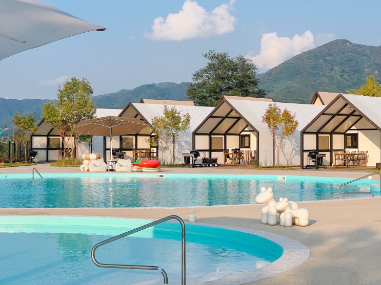 서울 근교 럭셔리 글램핑장 추천 초대형 수영장 노천탕 온수풀 동두천 캠핑장 아낌없이주는나무