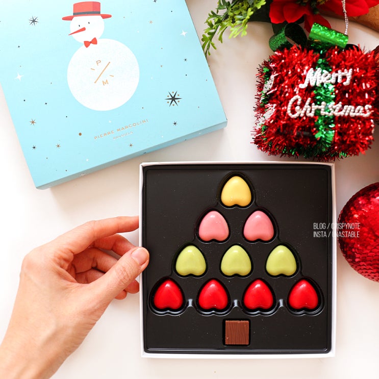 크리스마스 초콜릿 선물 시즌한정 하트 트리모양 피에르 마르콜리니 벨기에 왕실 초콜릿
