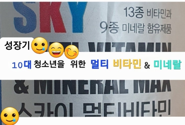 SKY 10대 청소년을 위한 멀티 비파민& 미네랄 맥스 인터넷 검색을 통해 종합 영양제를 구매 하였다....