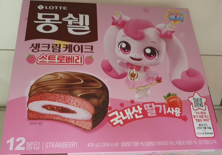 몽쉘 딸기 리뷰를 해봅니다. 몽쉘 딸기 중량은 408g이고 12봉지가 들어있습니다. LOTTE 몽쉘 생크림케...