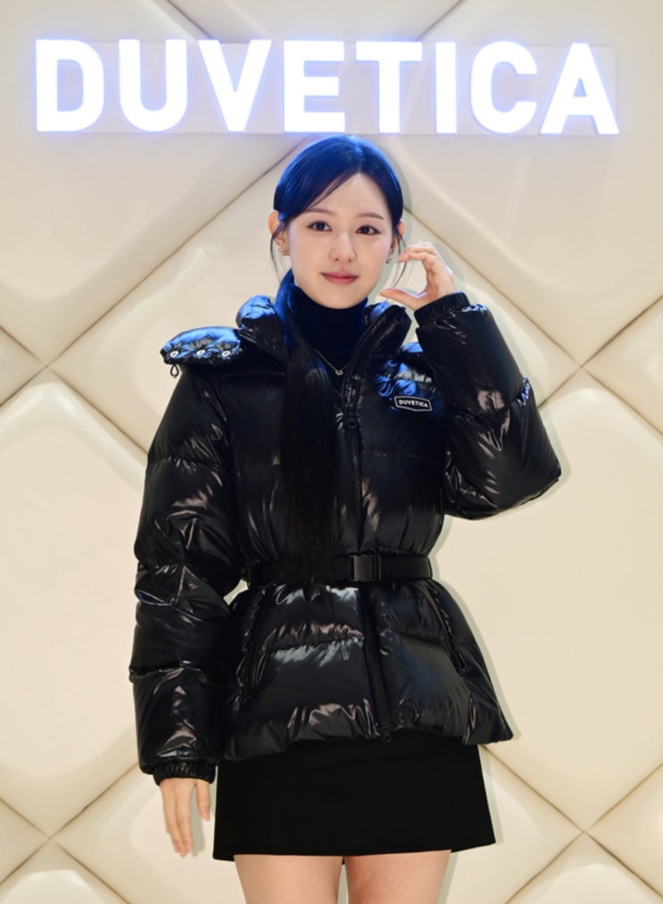 241126 김지원 “듀베티카” 런칭 행사 블랙 벨티드 패딩 착장 정보