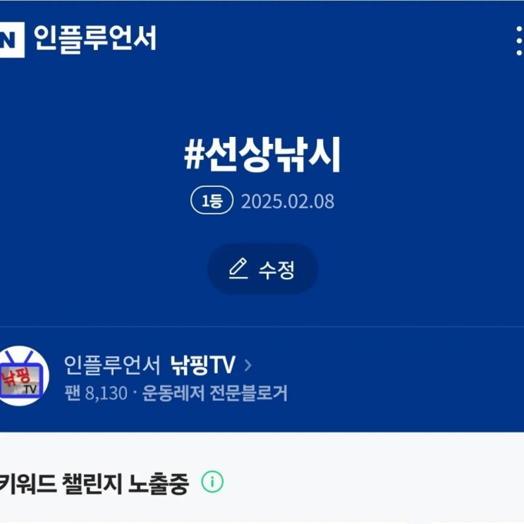 선상낚시 키워드첼린지 1위를 했습니다.낚핑TV 낚시키워드