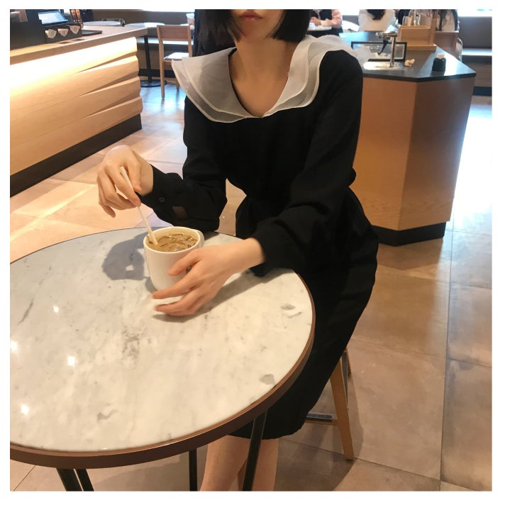 분위기를 물씬 풍길 수 있는 프릴 원피스입니다. 베이직한 블랙 원피스이지만 옷에 포인트로 프릴 카라가 ...