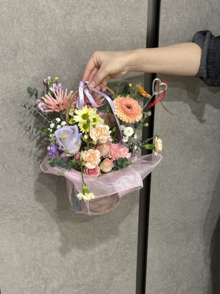 분당 플라워 레슨 더 상미입니다 오늘은 어머님의 환갑을 축하하기 위한 꽃바구니를 만드는 시간입니다 화...