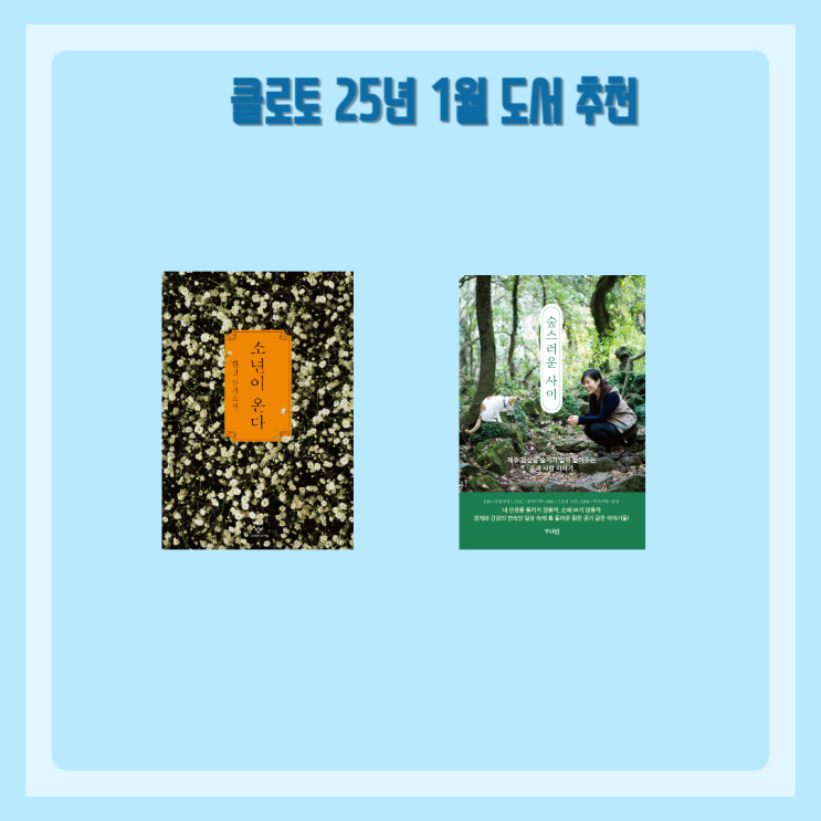 25년 1월 도서 추천 소년이 온다 - 한강 숲스러운 사이 -이지영 클로토 25년 1월 독서기록 25년 1월 독서기...