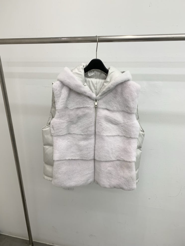 [품절] 구스다운 밍크 지퍼 후드 베스트바이올렛 dyeing