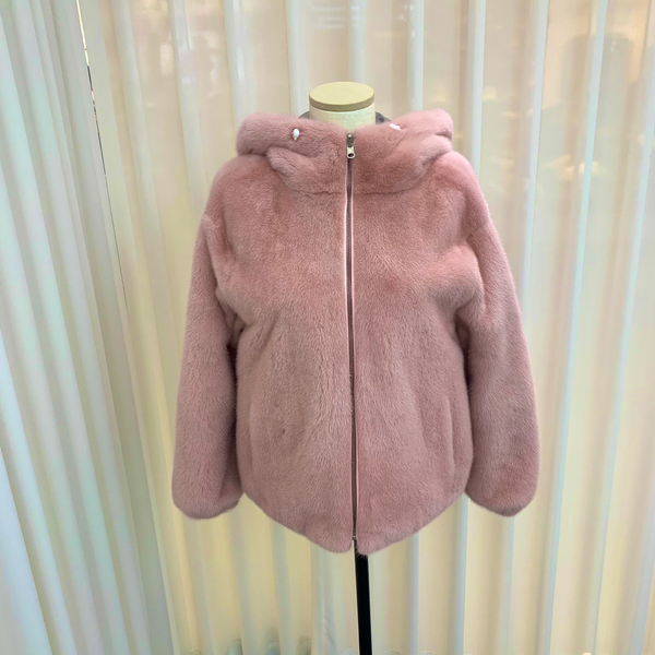 파스텔핑크 밍크리버서블후드자켓 밍크집업자켓