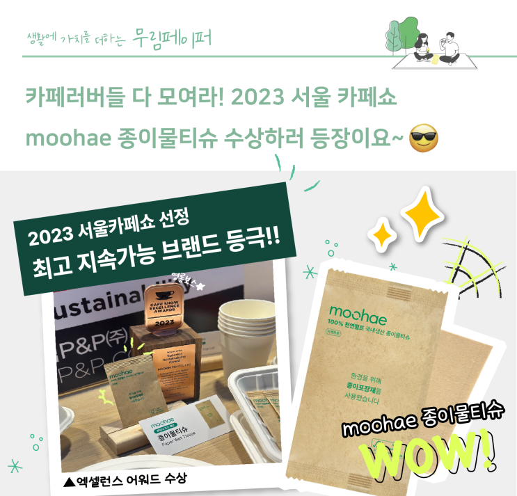 [무림_서울카페쇼]엑셀런스 어워드 수상! moohae 종이물티슈, 지속가능한 브랜드 선정 (feat.커피용품,물티슈추천)