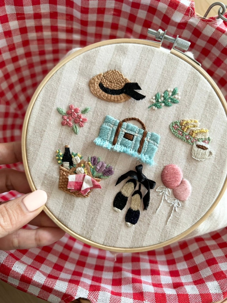 피크닉 자수, 프랑스자수키트, 부산프랑스자수, 안녕바스켓