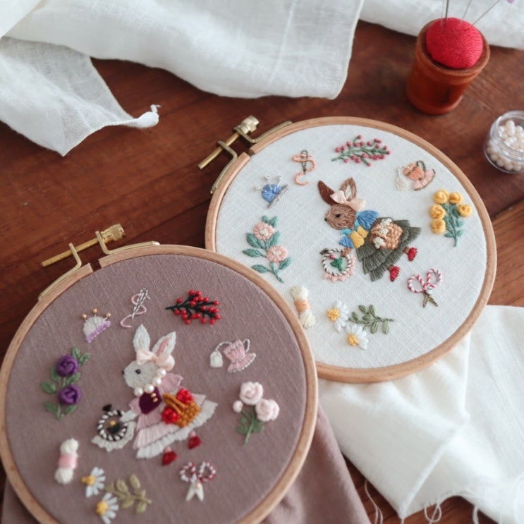오랫만에 맑은 날씨가 좋은날이에요 예전에 수놓았던 토끼를 다른 컬러도 자수해보고 싶어서 수놓아봤어요 ...
