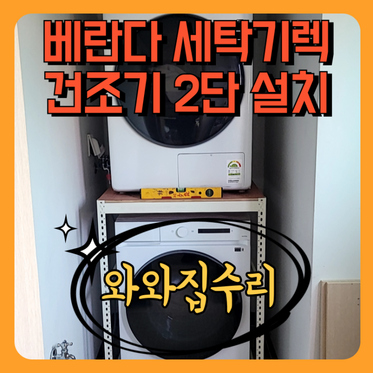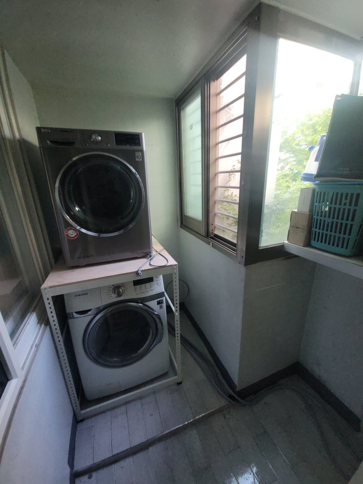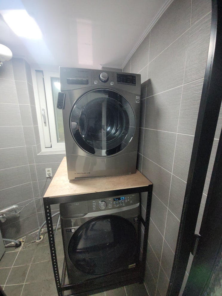 다용도실 세탁기 렉설치 건조기 위로 올리기