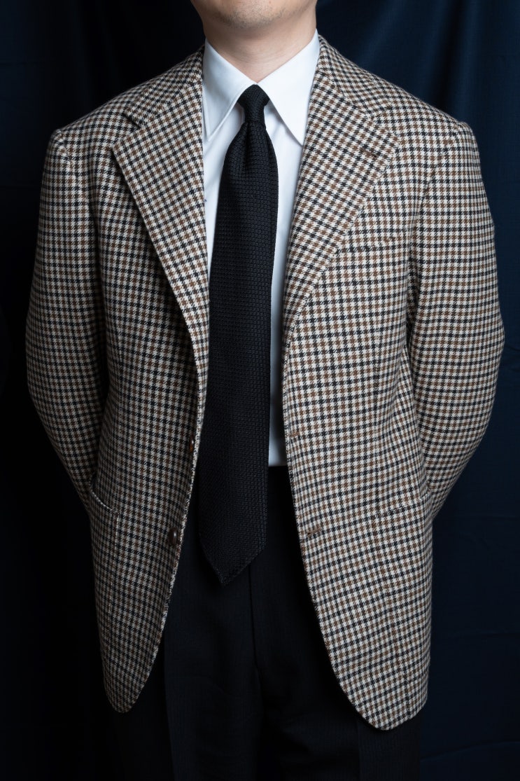 코랄로로쏘 깅엄체크 자켓 / 메멘토모리 블랙 그레나딘 넥타이