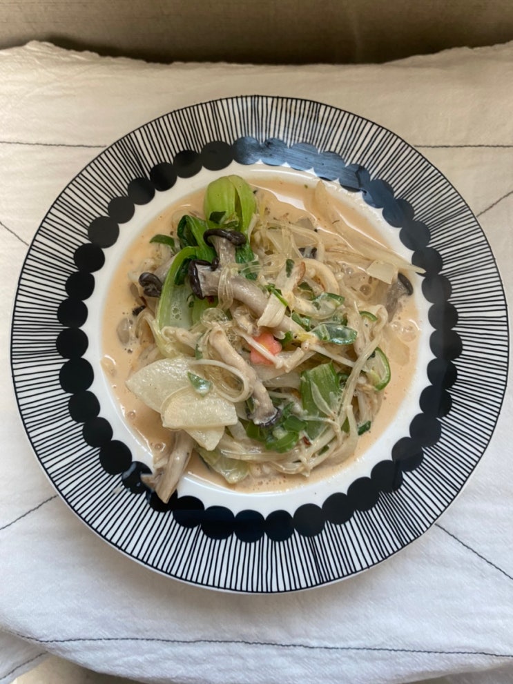 오뚜기 컵 누들 라면으로 초간단 홈메이드 크림 스파게티를 만들었어요 가끔 라면 먹고 싶을 때 칼로리 걱...