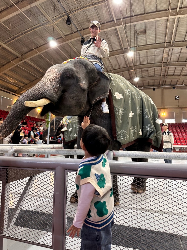 제주 점보빌리지 겨울에 제주도 아기랑 구경하기 좋은 코끼리 공연 소개할게요. 실내 공연이라서 비오는 날...