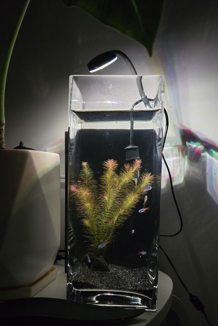 여러번 시행착오를 거치며 찾은 마음에 드는 테트라항 레이아웃. 3번의 어항 갈이에도 건강하게 버티고 있...
