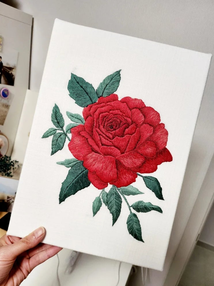 아빠와의 약속*실로그린 빨간장미 자수*
