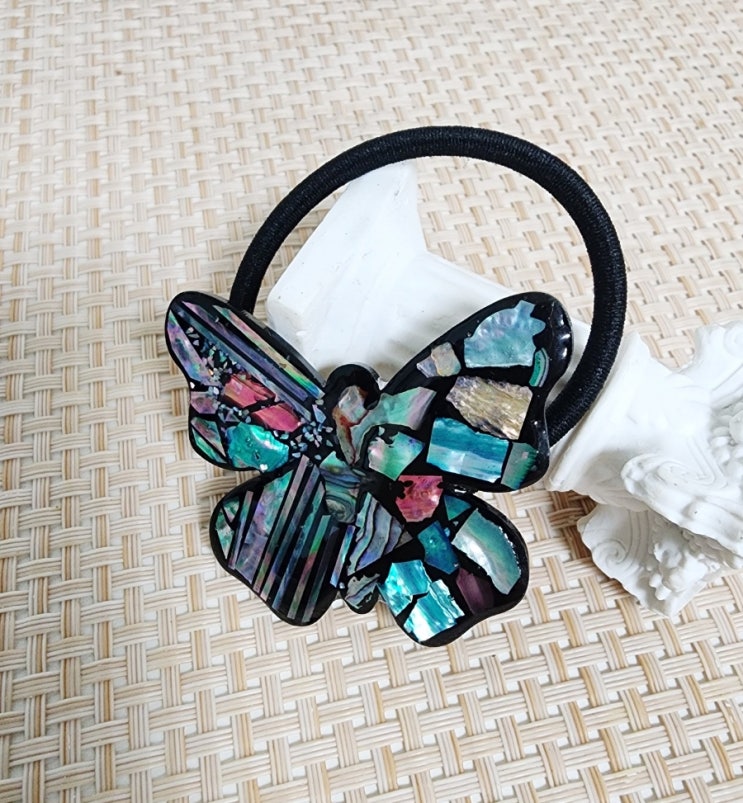 대전자개공예-오묘한 빛으로 매력발산하는 자개나비머리끈, 자개의 영롱함과 행운의 네잎클로버로 장식한 책갈피/자개공예자격증수강/ 자개출강,특강