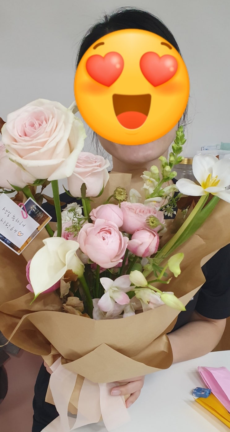 아내에게 꽃다발 선물했어요