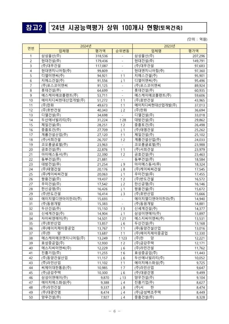 2024년 건설사 도급순위
