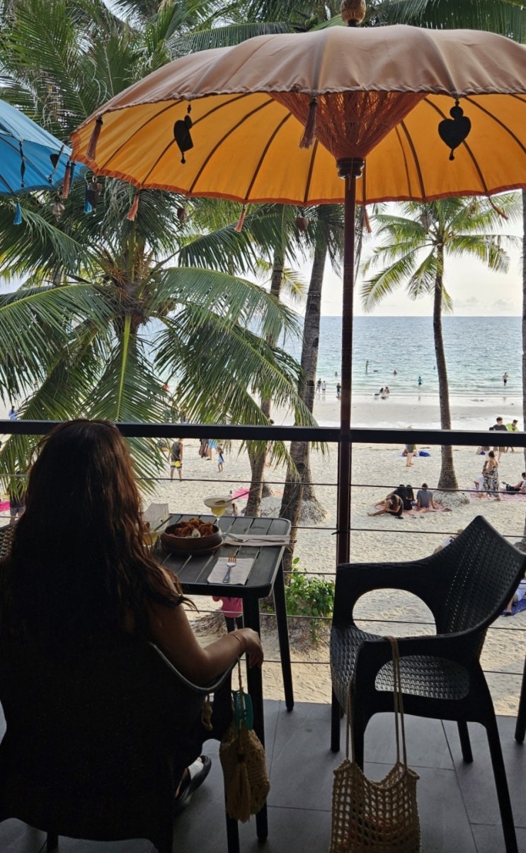 Globy traveling chef 보라카이 화이트비치 선셋 맛집 #보라카이글로비 2층 창가 쪽에 알록달록 파라솔이 ...