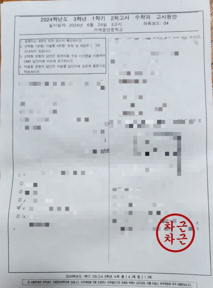 거제중앙중 1학기 2차고사, 차근차근 살펴봅니다.