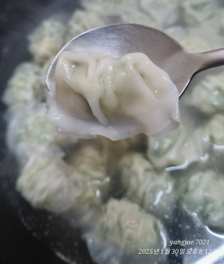250 그램 물만두 묶음 8150원 0.6 mm 얇은 만두피 돼지고기 부추 잘 섞인 어울림 으뜸 봉지 뜯어 하나 냄비...