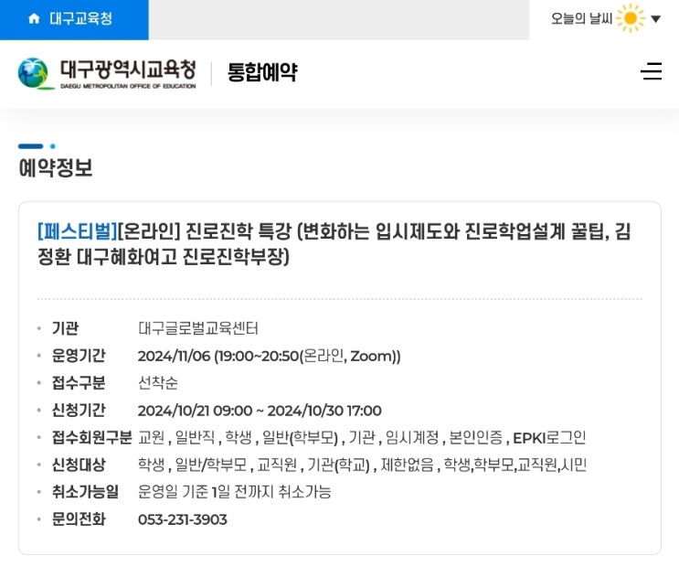 대구글로벌교육센터 2024/11/06 (19:00~20:50(온라인, Zoom)) (변화하는 입시제도와 진로학업설계 꿀팁, ...