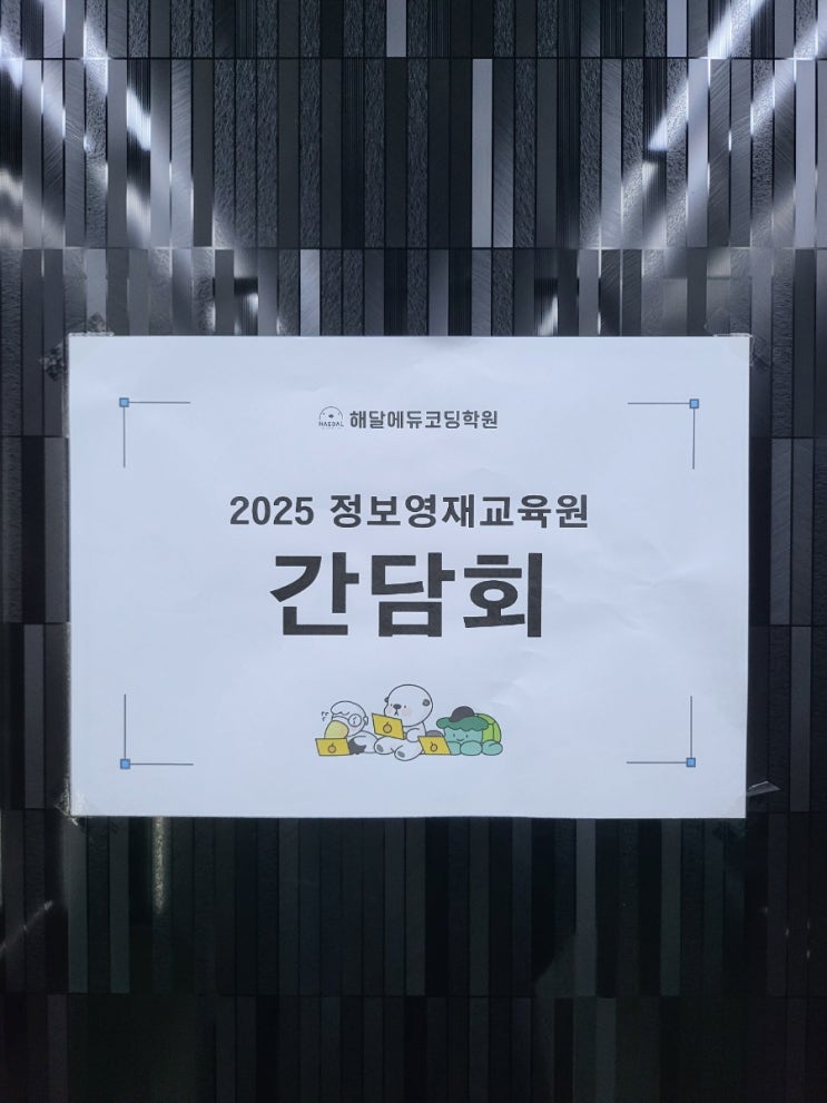 2024년 10월 30일, 해달 에듀 코딩 학원 간담회를 여러번 진행한 곳. 앞으로도 또 있을 수 있으니 확인 필...