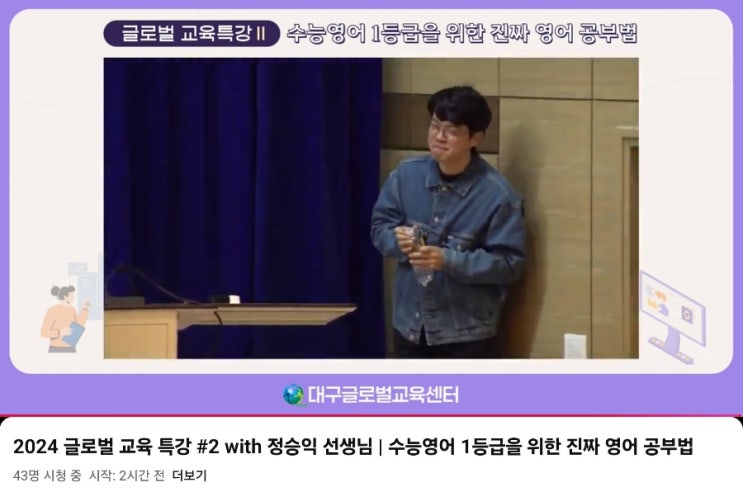 글로벌교육센터 진로특강 (1등급을 위한 진짜 영어 공부법) 2024/11/09 (9:30~11:20(온라인, 유튜브 생방송...