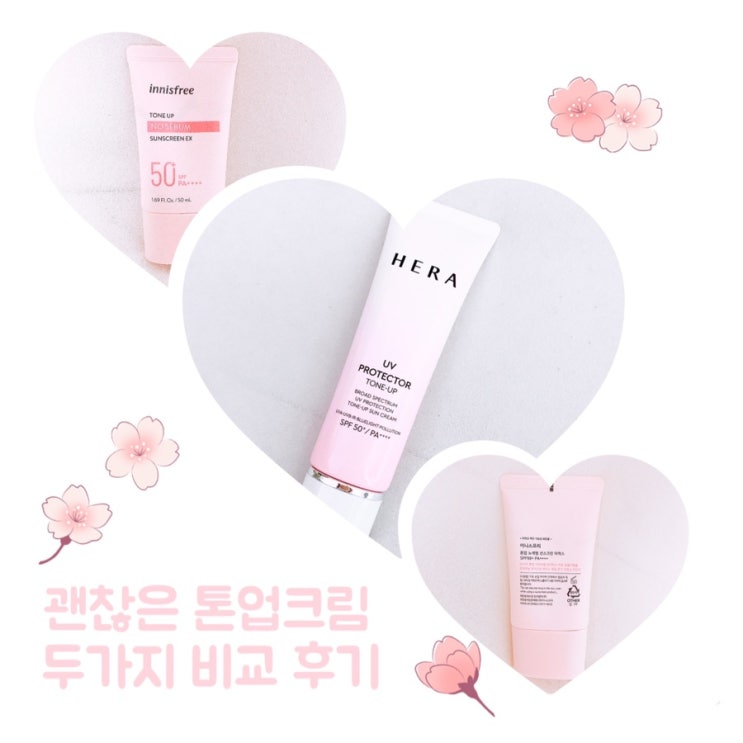 톤업크림 비교 후기 / 헤라 UV프로텍터 톤업크림 & 이니스프리 톤업 노세범 선스크린 EX (아모레몰 세일의 노예)