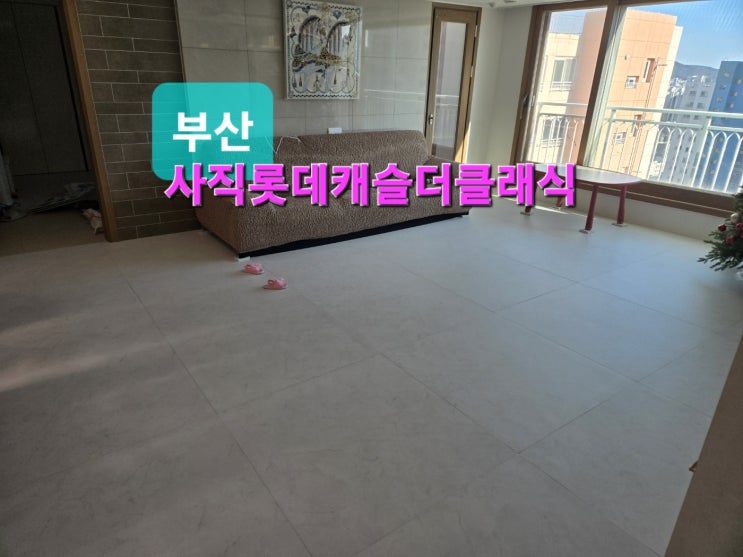 사직롯데캐슬더클래식 44평 거실과 복도 100cm 대형 프리미엄매트 화이트마블 사직롯데캐슬더클래식층간소...