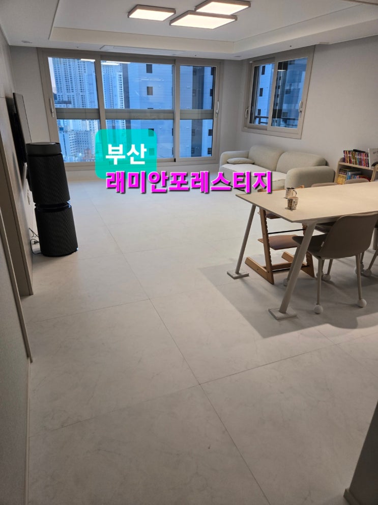 부산래미안포레스티지 84c타입. (타워형구조) 거실복도주방 100cm 대형 프리미엄매트 화이트마블 래미안포...