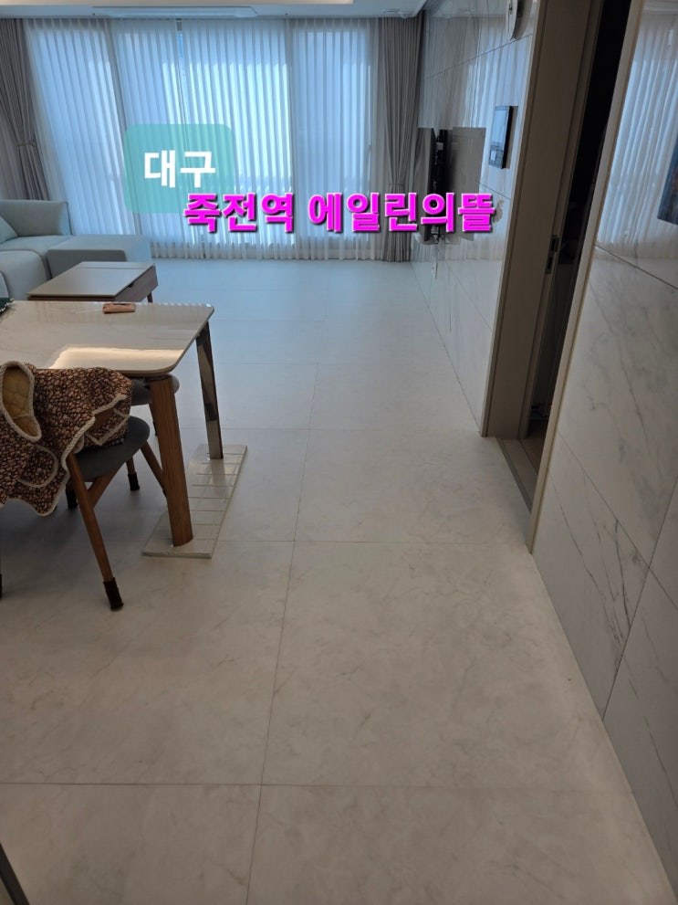 대구죽전역에일린의뜰84타입 (타워형구조) 거실복도주방입구. 100cm크기 프리미엄매트 화이트마블 죽전역에...