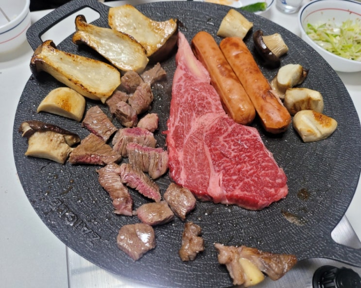 집밥 소고기구이 탑마트 갔다가 소고기 좀 사와서 구워먹습니다 윗등심 1등급으로 3팩 구매했네요 버너에 ...