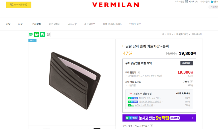 네이버 쇼핑에서 버밀란 이라는 브랜드의 카드지갑을 샀다. -> 2만원 정도인데 // 품질이 상당히 좋다. ...