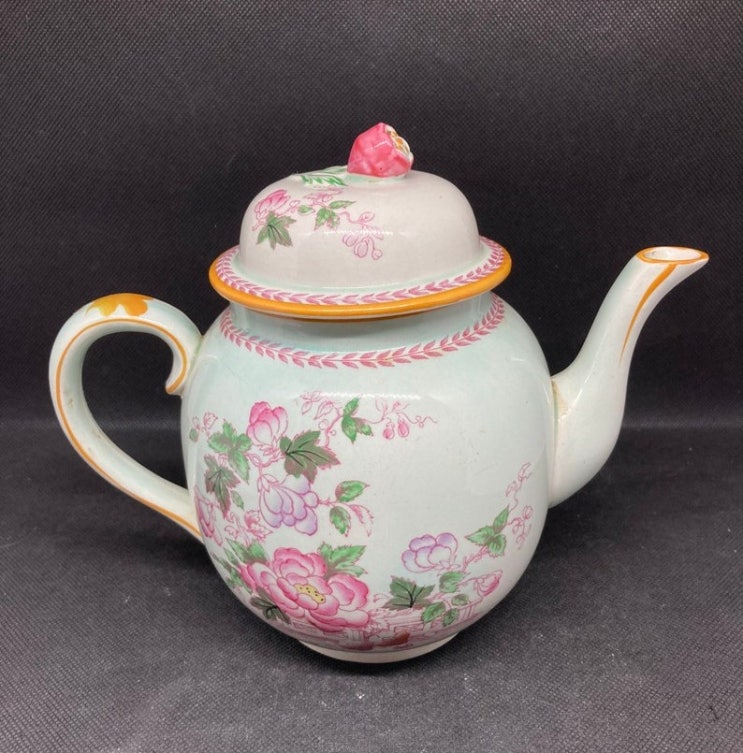 레어 영국산 아담스 칼릭스웨어 핸드페인팅 입체 꽃봉우리 뚜껑 소형 티팟