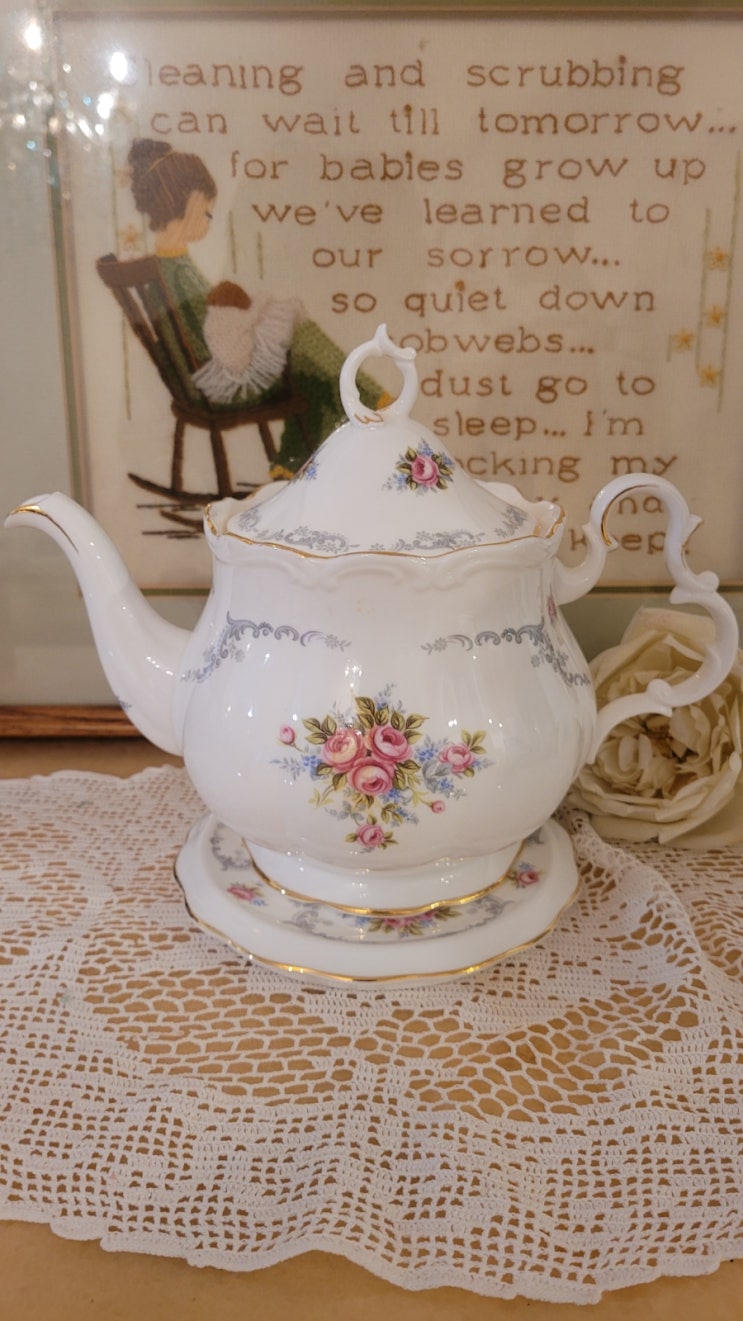 로얄알버트 Tranquillity 통통티팟과 받침대세트입니다 켠디션은은빈티지특성상 유약이고르지못한점.미세...