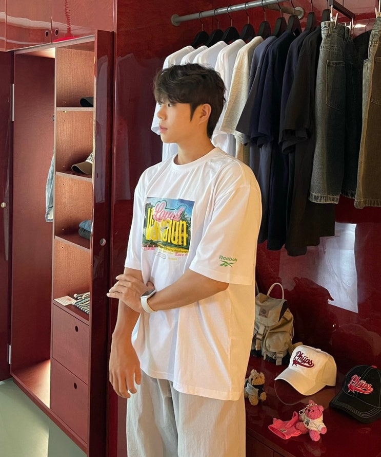 아크메드라비 오버핏 블랙반팔 볼캡 무채 코디추천