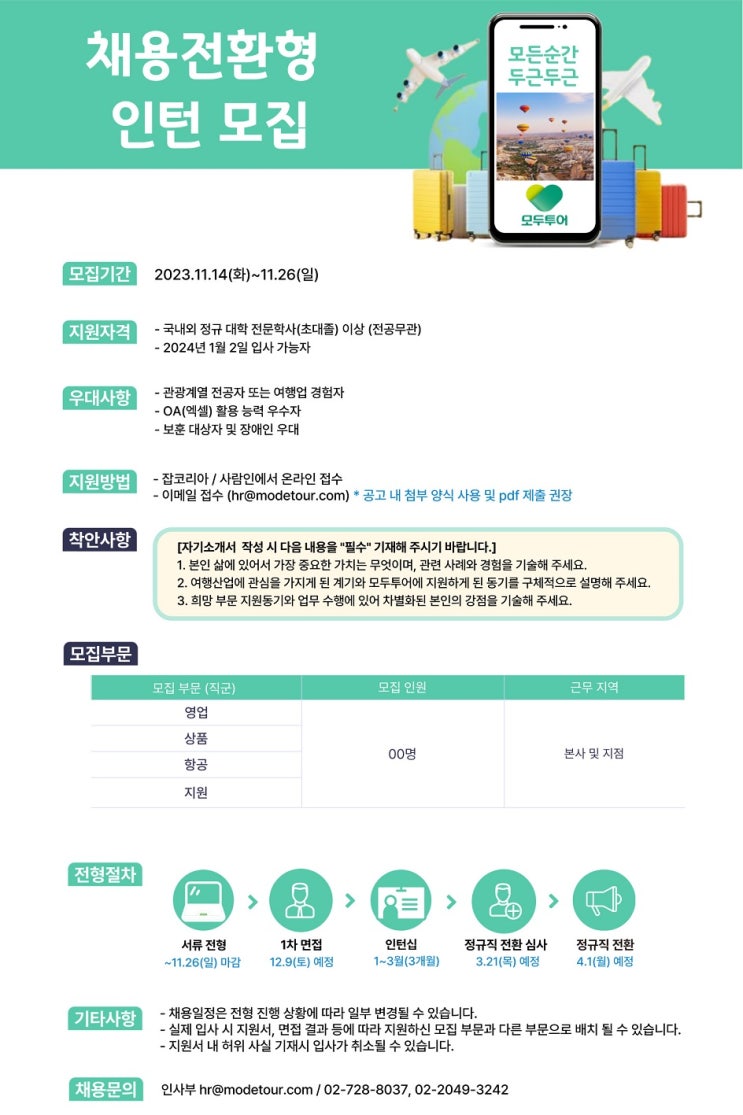 ※ 2023 모두투어 채용전환형 인턴모집 ※ (~11.26 일)