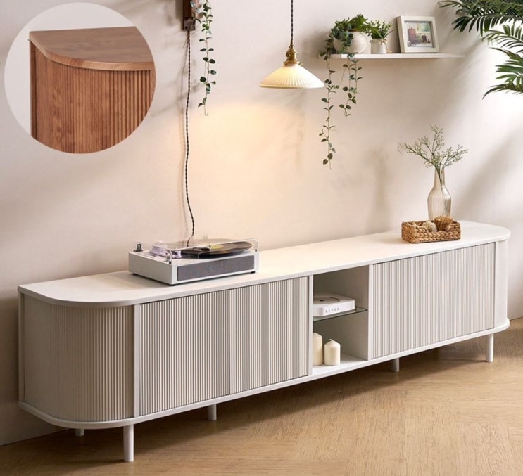 ?.[내돈내산가구]이안가구_밀라노 2100 라운드 템바보드 높은거실장 티비다이 tv선반 강화유리 EAN-SH003