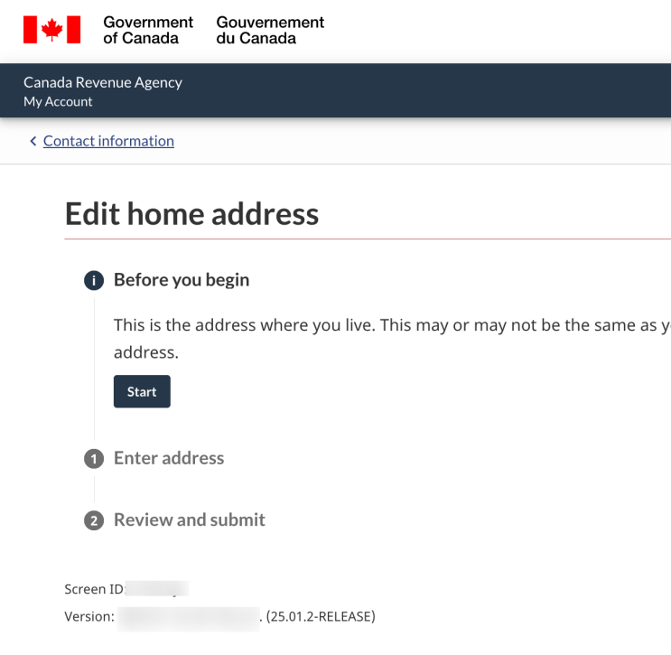 캐나다 CRA 주소변경