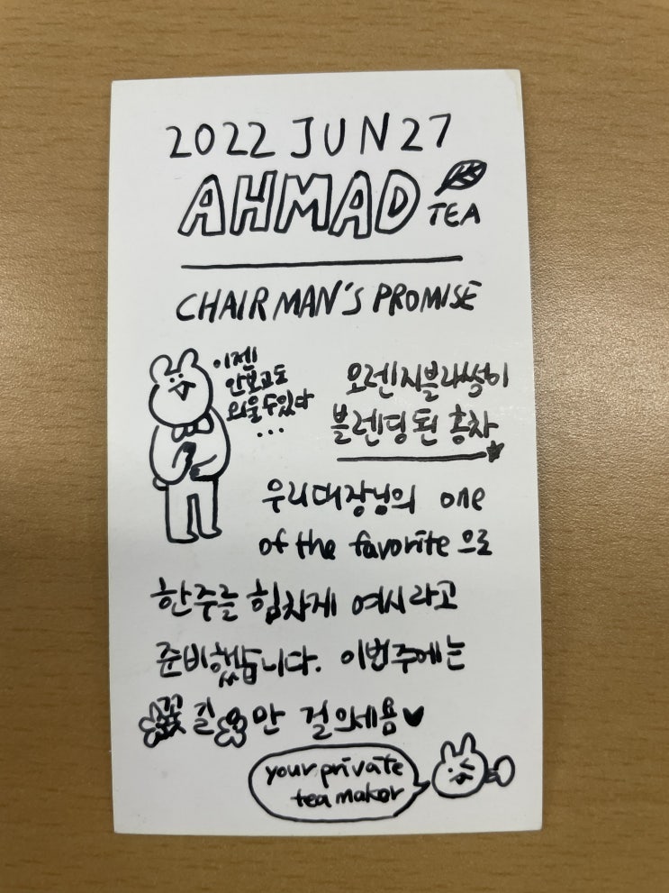 오늘의 차 사무실에서 차를 서빙할 때마다 같이 쓰는 작은 카드. 알고보면 명함용으로 뽑은 것인데, 몇 종...