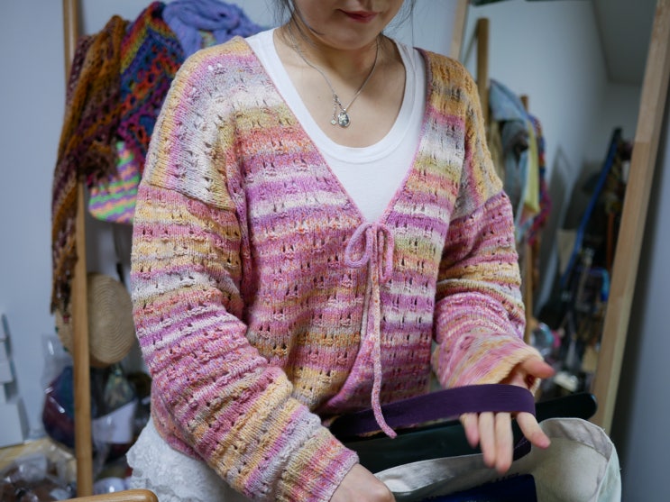 코튼 베이스의 테입사 형태의 실인 #시크릿가든 으로 만든 카디건입니다. 기본 스타일이지만, 아이코드로 ...
