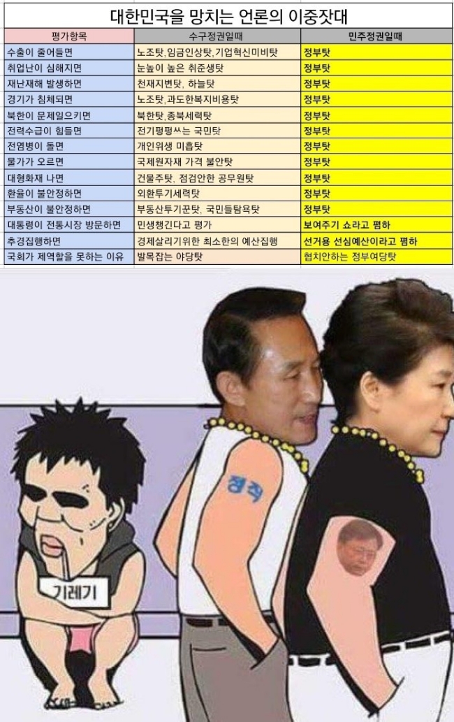 대한민국을 망치는 언론의 이중잣대