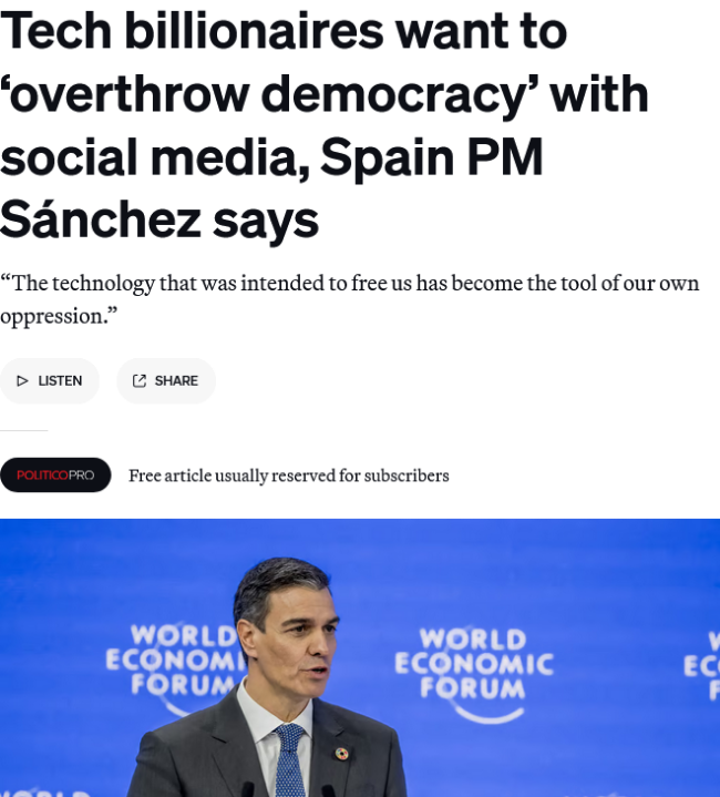 스페인 총리 왈, "기술이란 우리를 자유롭게 해주기 위한 것이다 그러나 현재의 기술은 우리를 억압하...