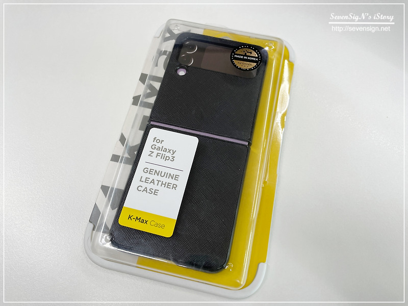 | 최근 인기를 모으고 있는 갤럭시Z플립3에서 괜찮은 케이스하나 끼워봤습니다. K-Max 라는 브랜드의 사피아노 가죽 케이스인데요, 블랙컬러를 사용해보게 되었네요. 케이스 컬러는 바이올렛, 브