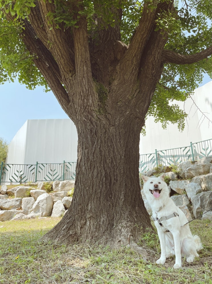 140년 됐다는 동네 은행나무와 한 컷- 봄이는 이제 새집에 적응을 해서 목욕시키기 좀 수월해졌고 날은 한...
