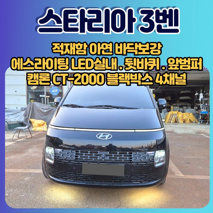 스타리아3벤 아연바닥보강/에스라이팅LED/캠론4채널블랙박스 설치작업